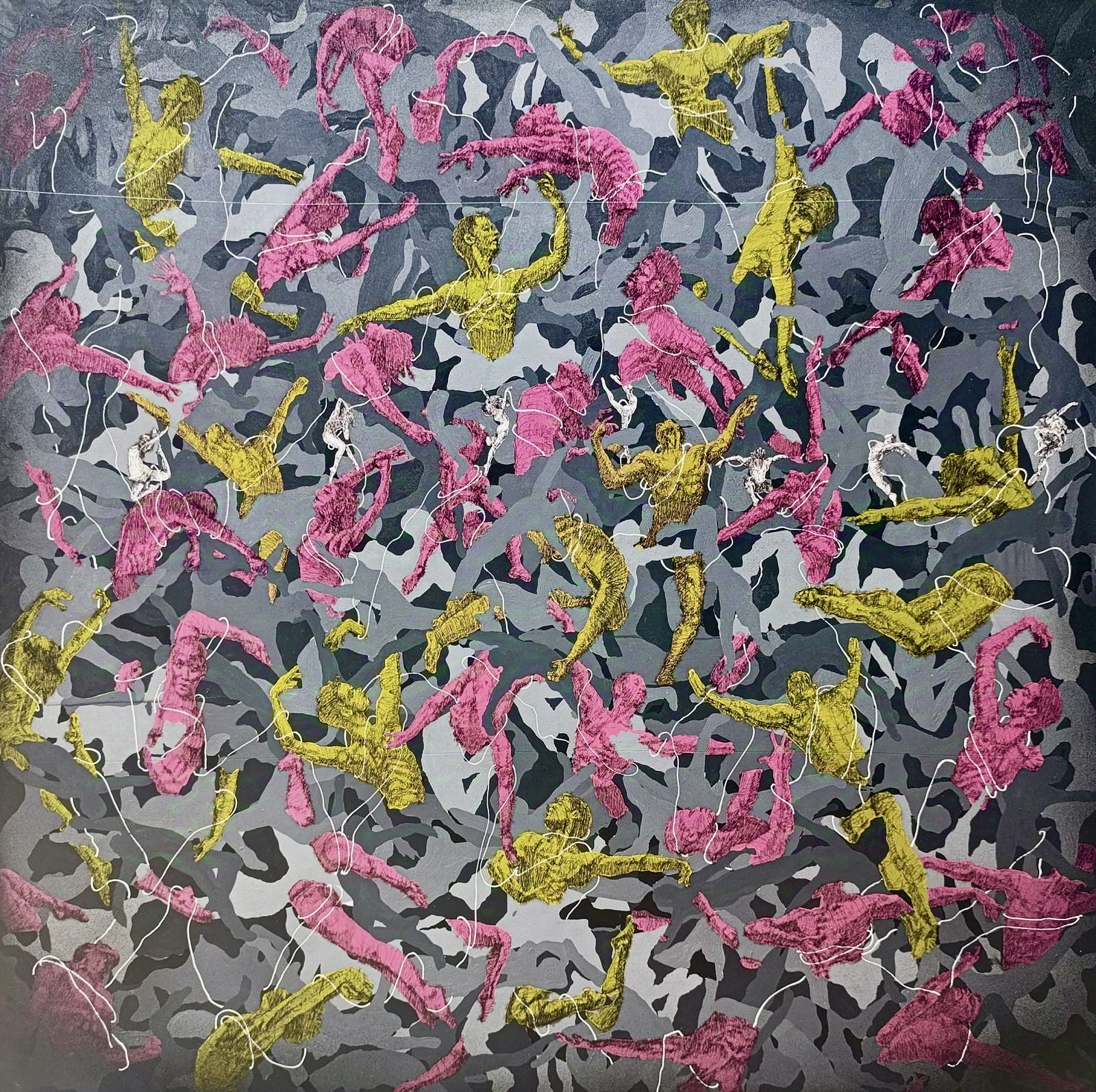 Ces corps en mouvement, peints à l’acrylique, captent l’émotion inhérente à la danse. L’utilisation du stylo