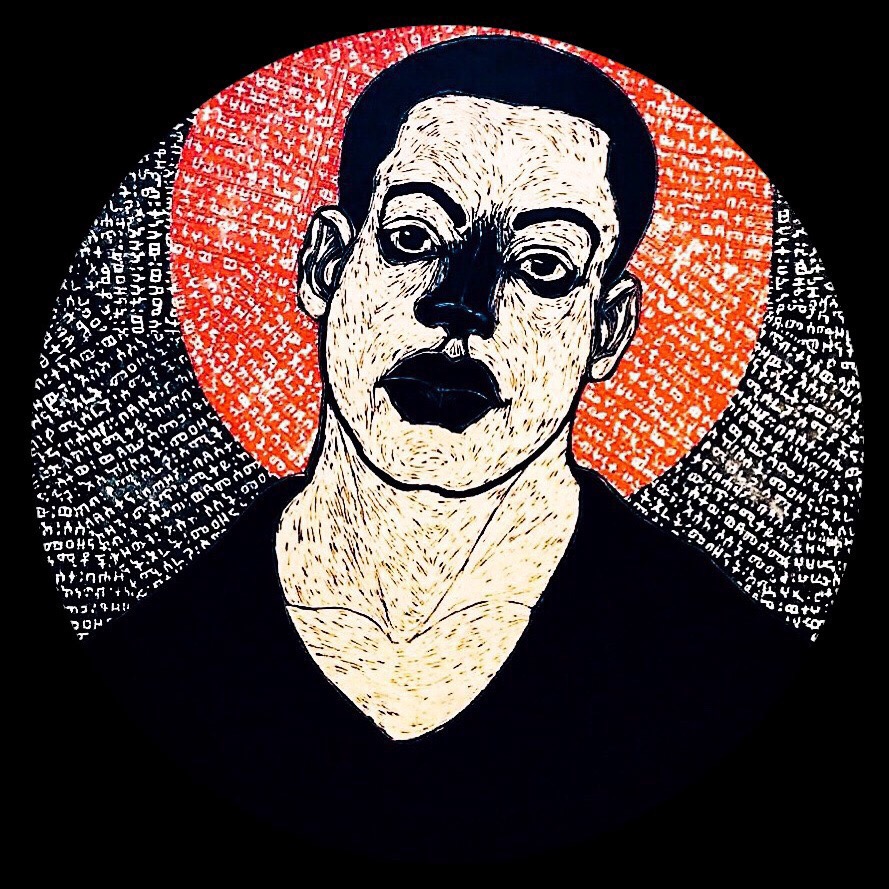 Ephrem Solomon observe son environnement et présente des œuvres socio-politiques à la gravure sur bois et techniques mixtes. Avec du noir et blanc pour symboliser la réalité, Solomon présente ses observations par le symbolisme et l’utilisation de documents d’archives personnels ou liés à la politique.
