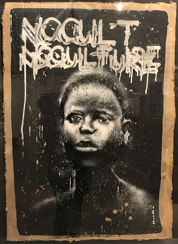 Petit fils du peintre expressionniste Francis Gruber, fils d’une dramaturge française et d’un artiste Congolais, Kouka est né à Paris en 1981 et est diplômé de l’Ecole d’Art d’Avignon en 2005. Cet artiste franco africain, aux multiples talents et aux divers moyens d’expression, est guidé depuis ses débuts par une recherche de l’appropriation de l’espace public qu’il explore pour mieux y intégrer ses réflexions et ses messages fondamentaux. Revendiquant son appartenance à la culture urbaine il utilise également ses textes et slogans dans ses chansons de rap.