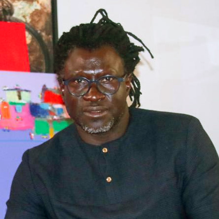 Son travail – d’apparence naïve et colorée- s’inspire particulièrement d’un quartier de Dakar, la Médina, véritable dédale de ruelles désordonnées où circulent des véhicules improbables. Du linge sèche sur les fils, les antennes de télévision griffent le ciel, des numéros de téléphone lancent des appels sans réponse. Les habitations s’enchevêtrent: amas des débris du monde et de ses misères, cartons, tôles ondulées,parpaings mal équarris, cases en torchis, rien ne manque pour illustrer l’ingéniosité de l’homme de nos cités sans âme.