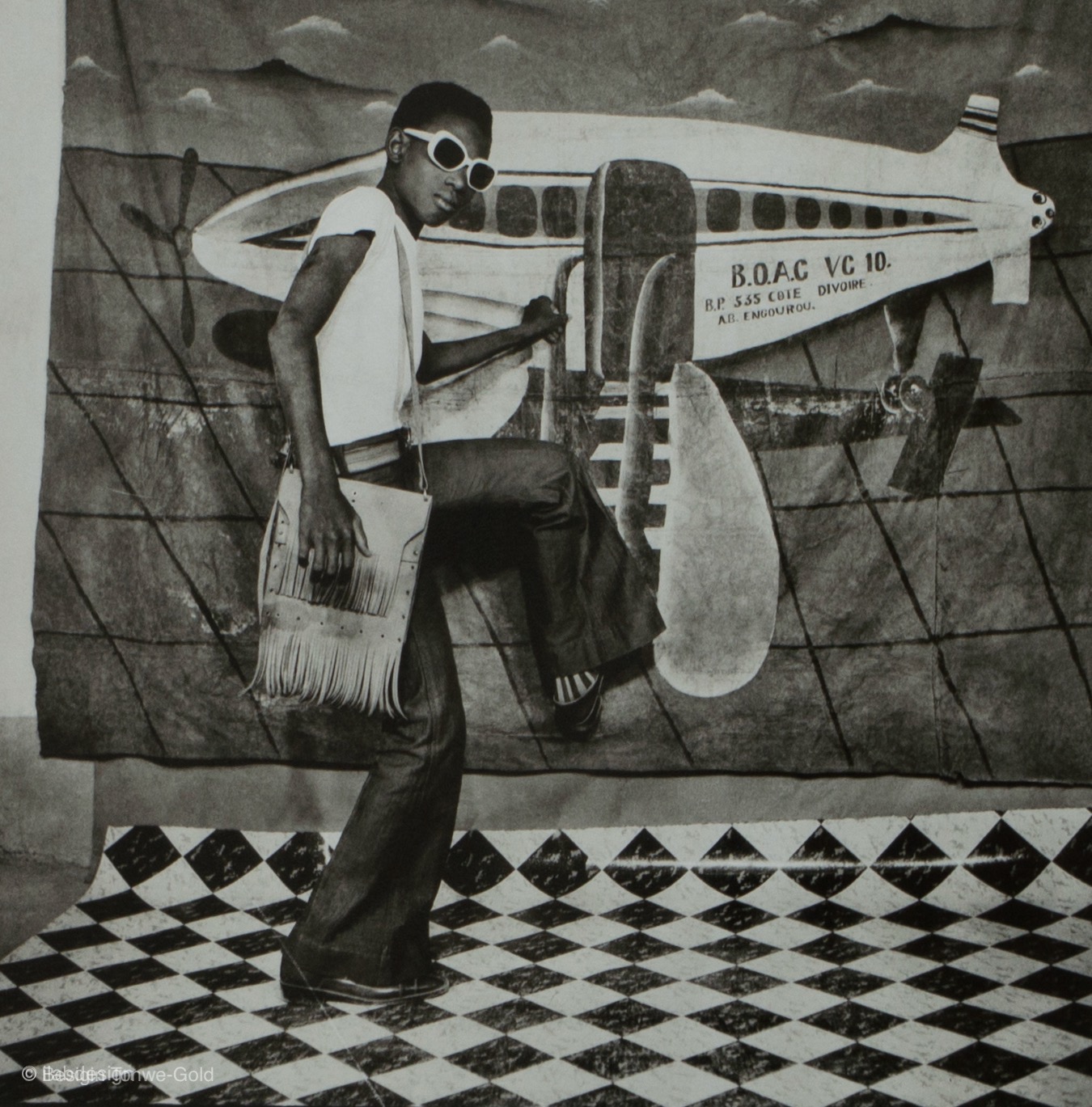 Qu’ils soient immobiles ou qu’ils se déplacent malicieusement, ses sujets illustrent à bien des égards l’éloignement et la mélancolie des villes africaines enclavées au cœur du continent. Ils véhiculent aussi une exubérance juvénile à la suite des premières décennies d’indépendance africaine. Son objectif passe en revue la fusion naturelle entre tradition et modernité. Ses images en noir et blanc ont vraiment magnifié cette époque dorée avant le format 24×36 et les films en couleur communs ont ajouté à ce que William Eggleston a appelé la «forêt démocratique», une dilution sans fin de la vue photographique dans l’espace public.