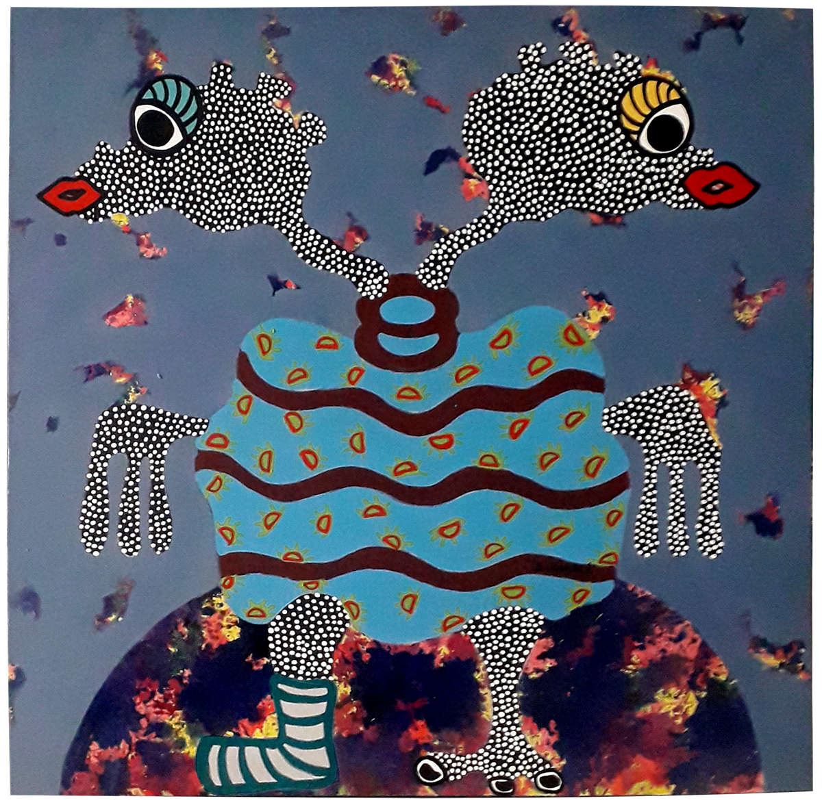 Au début dans le vide de l’univers, tout à commencé par le son « YO » incluant tout et surtout la conscience humaine. Koni, le dieu suprême et le créateur du monde, a selon la mythologie bambara créé 3 esprits dont Faro- l’esprit de l’eau, Pemba – l’esprit de la terre et Teliclo – l’esprit de l’air . A travers la création de deux sets de jumeaux le monde a été peuplé d’animaux et de plantes ainsi que d’êtres humains tous issus des graines d’acacias. L’ancrage des racines /pieds des personnages à la fois humain, végétal et animal est représenté dans les tableaux de Soul come une base solide et unitaire. Cet ancrage représente la racine de l’évolution de l’homme dans cette mythologie où « tout est venu de rien » mais est en harmonie avec la notion de racine commune de l’âme humaine.