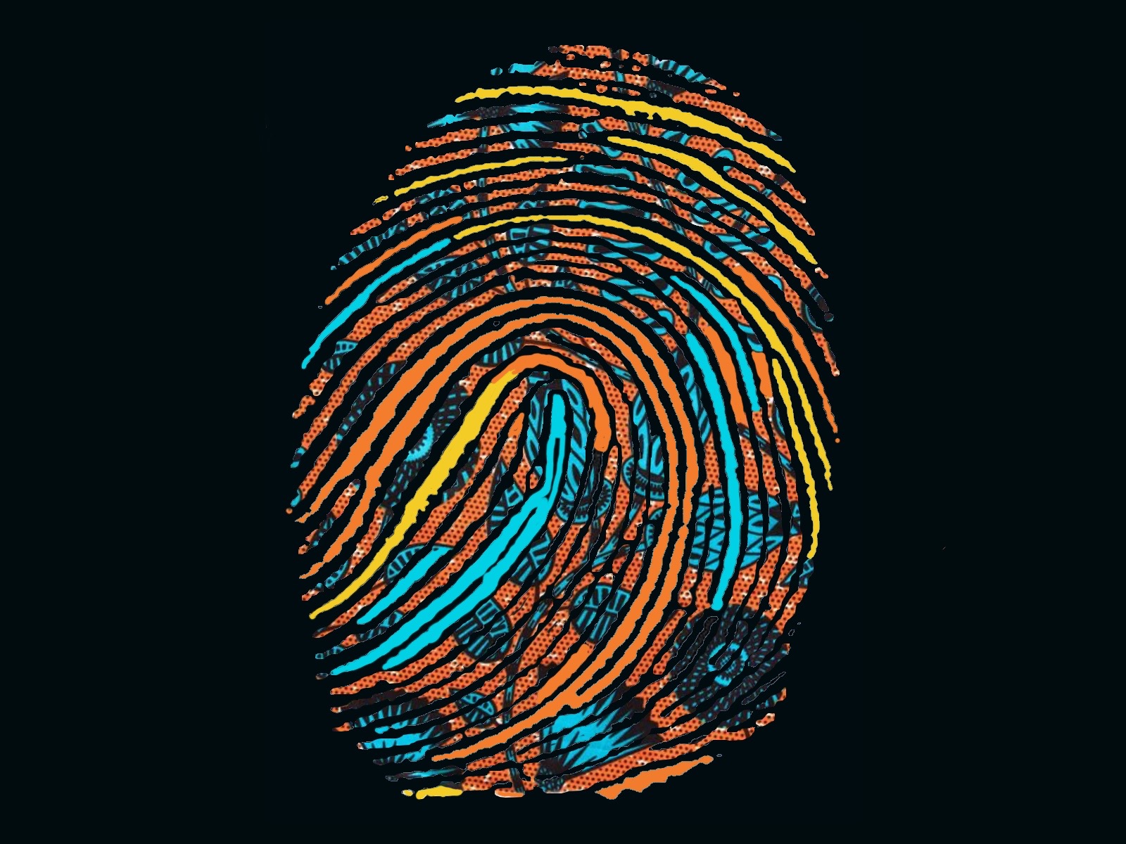 Black Identities Véronique N’Daw Dunoyer Détails techniquesPhotos sur aluminium 25x25cm 2018 PrésentationEmpreintes digitales revissées aux couleurs du wax.