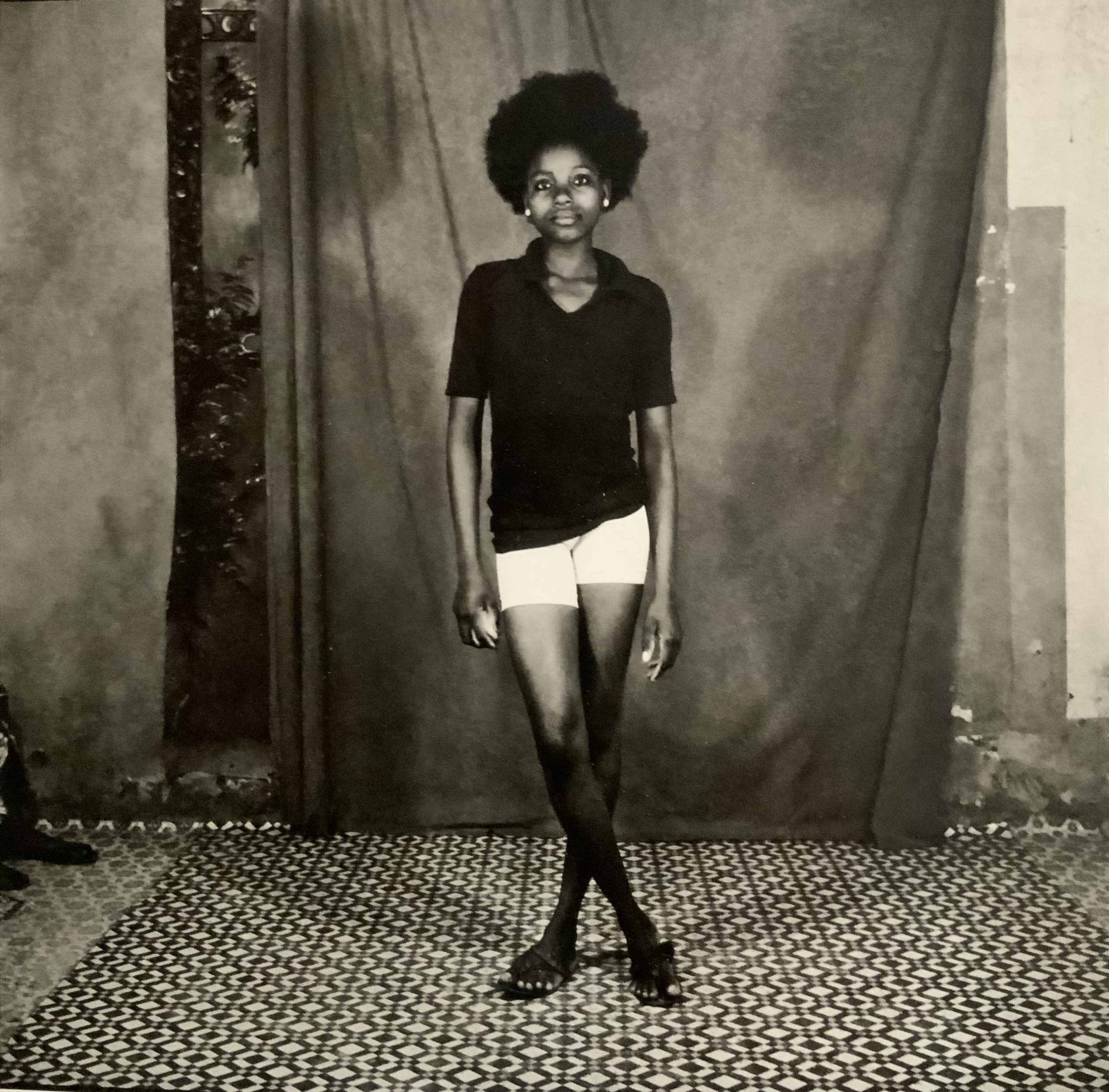 SANLÉ SORY photographe Burkinabé crée dans les années soixante, le Studio Volta Photo véritable espace de magie et de fantaisie sur plusieurs décennies (1960-1985). Ses photographies -archives vivantes ou instantanés de vie prises sur fonds de scènes peints, utilisent des accessoires de modernité de l’époque: téléphone, guitares, transistors, motos ou disques. Les vinyles symbolisent une véritable révolution culturelle post indépendance. Les photographies de Sanlé SORY célèbre les nuits yéyées de Bobo Dioulasso et sont la bande-son originale et pourtant silencieuse de ces années d’exubérance rythmée par la musique yéyé, le jazz, le rock ou les groupes voltaïques émergents – chacun y entend ce qu’il veut.