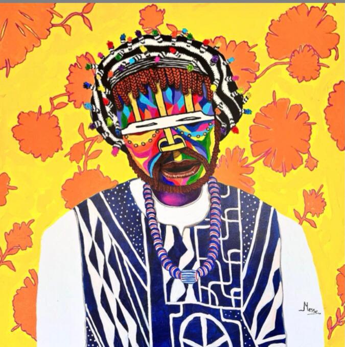 Dans cette toile , Messe Bidias représente un personnage un homme masqué . L’homme dans la région du Cameroun est censé être le pourvoyeur  de ressources et le protecteur de la famille . Cependant, les traumatismes psychologiques causés par la guerre ont rendu de nombreux hommes incapables de répondre à ces attentes sociétales et Messe a voulu faire le portrait d’un homme qui au delà des  traumatisme vécus entre autre lié aussi au  conflit régionale continue à garder  sa dignité. Il est revêtu de Ndop, le tissu des nobles de l’Ouest du Cameroun et portant un masque faisant allusion à  la royauté.