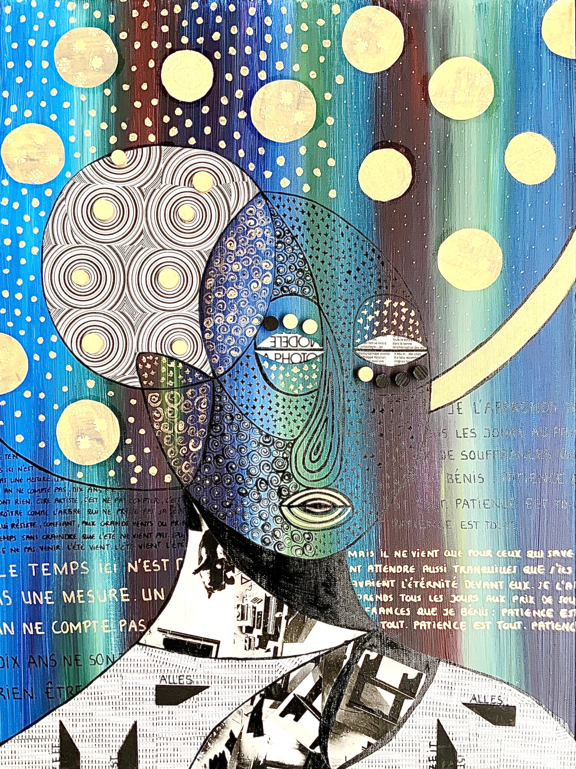 L’expression artistique de Myriam Kone est une ode à la femme, à la mère nourricière et à celle qu’elle est devenue: il est même possible de la reconnaître sur ses toiles à moins que ce ne soit son double, son autre moi