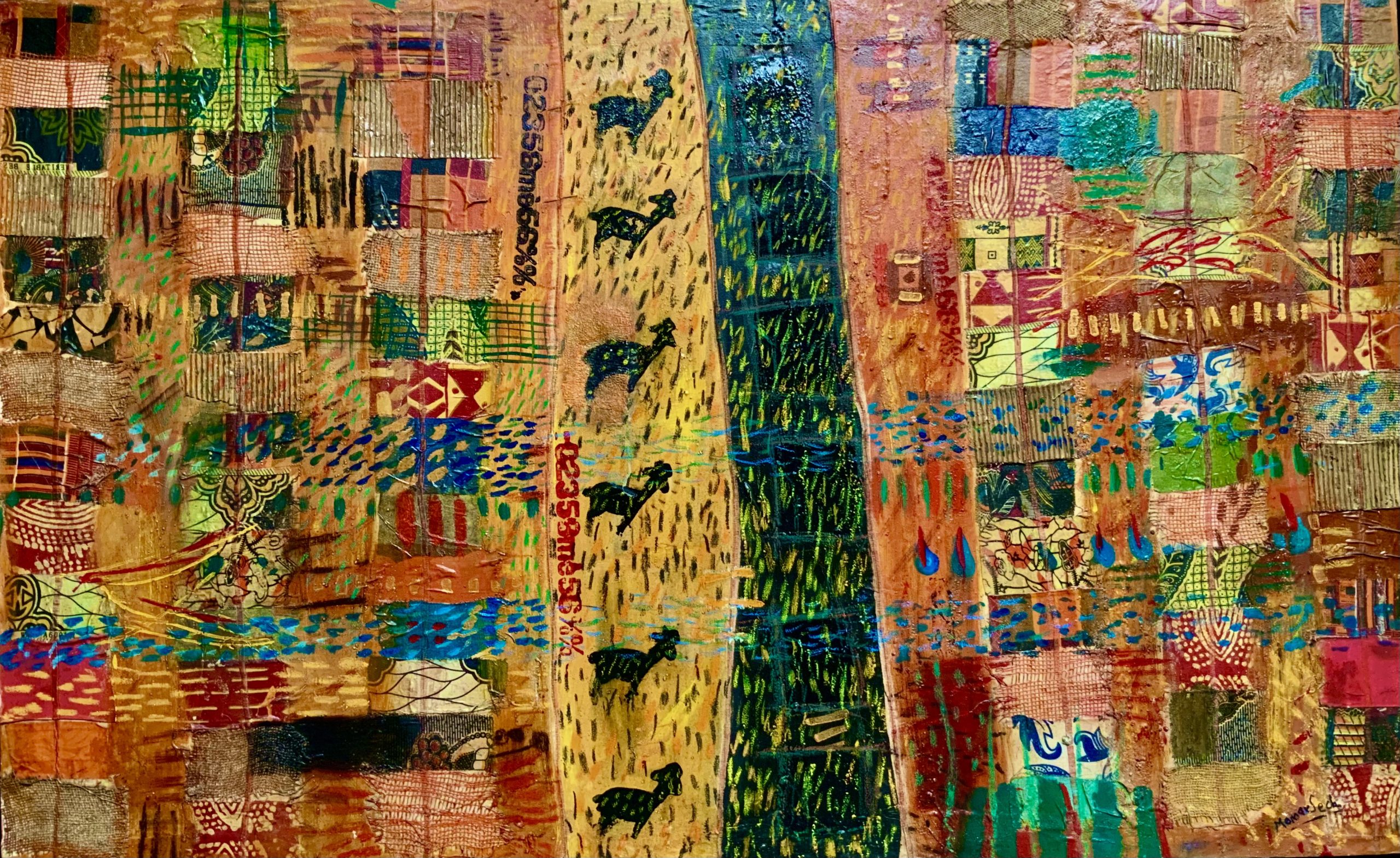 L’unité dans la diversité. Momar Seck décrit ses créations comme des unités plurielles. Ses toiles et ses sculptures sont issues d’assemblage de matériaux divers comme autant de métaphores de la diversité du monde et de l’humain. Une palette colorée rehaussée d’incrustations dont des bouts d’étoffe et autres fragments qui ont, eux aussi, leur histoire. La variété des textures et des couleurs font de chaque création un symbole à la fois d’union et d’interdépendance fragile : une diversité qui ne tient qu’à un fil et qui pourtant est une force. Chaque œuvre apparait comme « une diversité singulière ».« Ma création est née de mon substrat culturel et se nourrit de croisements incessants avec d’autres cultures. »