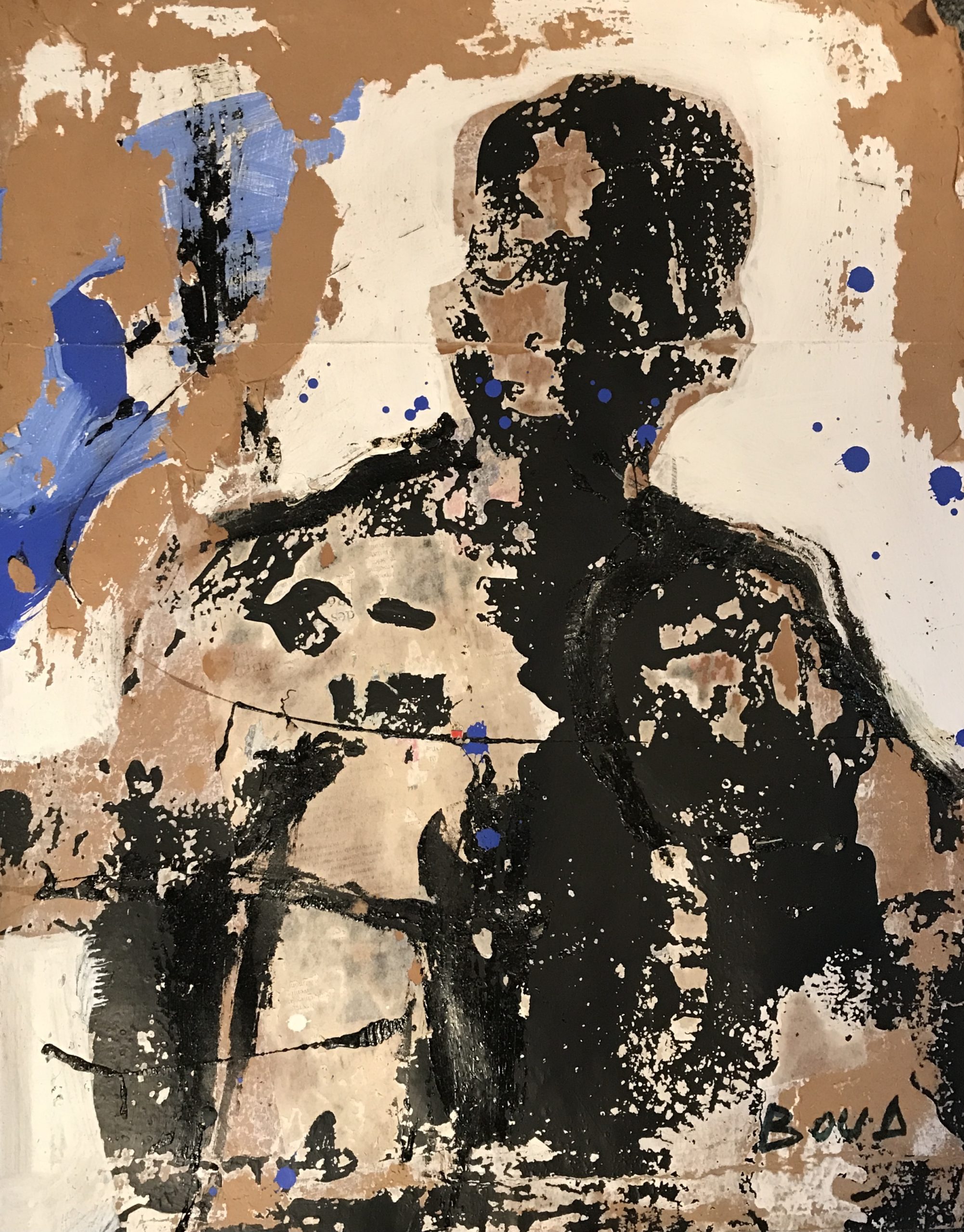 Les sujets de l’artiste ivoirien Armand Boua pourraient être victimes d’exploitation, ou symboles d’espoir et d’innocence. La gravité de la crise en 2002 qui a secoué la Côte d’Ivoire  préfigure la pratique de l’artiste de rue, qui voit les atrocités de l’homme résonner dans la vie quotidienne et leur donne forme à travers la peinture et des mouvements émotionnels. Après avoir étudié à l’École nationale des beaux-arts et au Centre technique des arts appliqués à Abidjan, il s’est immergé dans le monde artistique, décrivant les vrais problèmes des jeunes enfants orphelins . Son principe est celui né de l’engagement avec du matériel trouvé, auquel il applique ses formes de signature qui invoquent des images et des scènes en souvenir. Boua est connu pour ses compositions texturées et stratifiées, utilisant du goudron et de l’acrylique sur des boîtes en carton trouvées. Chaque couche est appliquée, puis nettoyée et supprimée, laissant des formes abstraites qui vont et viennent. Il réalise un équilibre délicat entre ses gestes lourds, une exécution violente et le traitement doux de son sujet.