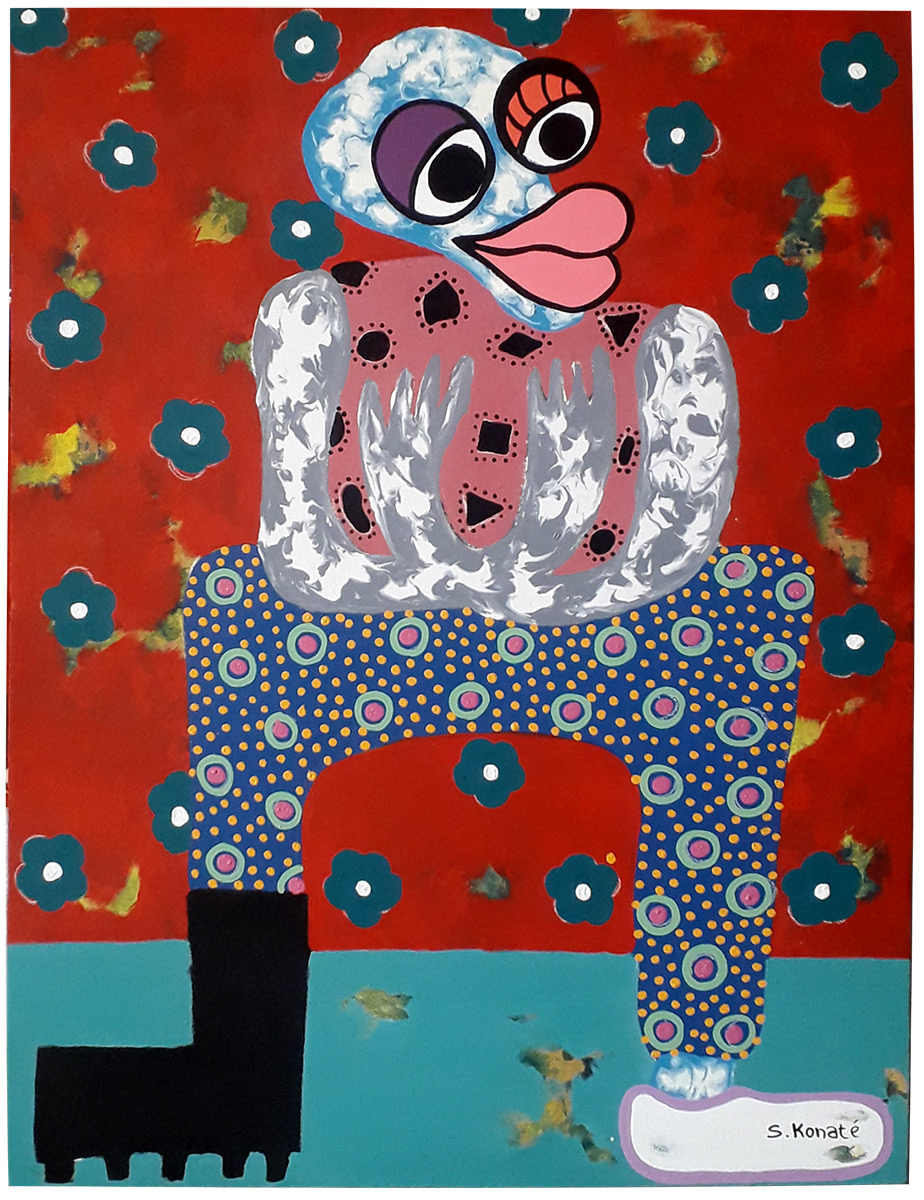 Les personnages hybrides de Soul occupent le devant de la scène. Ils sont immédiatement reconnaissables à leurs yeux globuleux, leurs bouches « découpées » et leurs formes organiques souples. À la fois humains, animaux et végétaux, ils sont nés de l’imagination débordante de Soul. Un imaginaire inspiré par la richesse de la cosmogonie bambara, peuple de la région du haut Niger au Mali , selon laquelle le premier homme est né d’une branche d’acacia. Il dit être également influencé par l’univers surréaliste de Bouabré, Picasso et Dali.