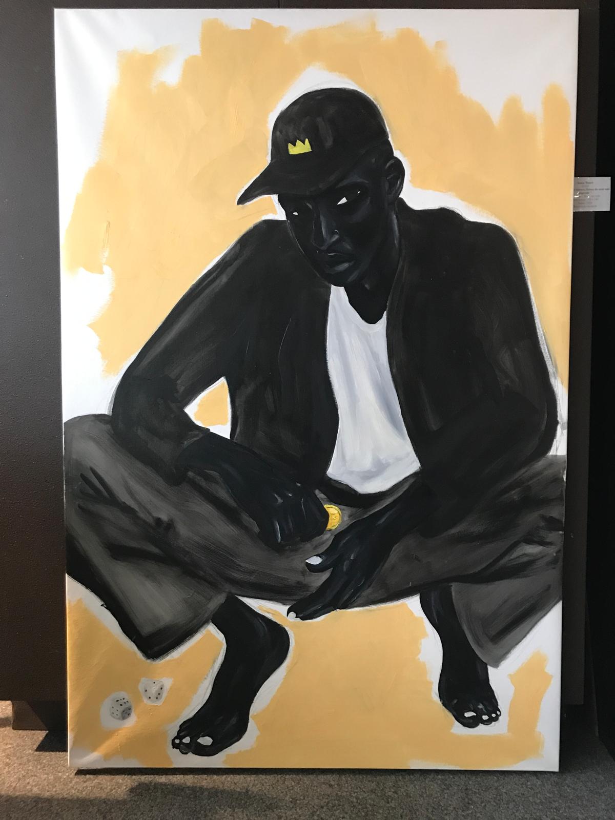 Dans ce tableau , l artiste Isma dépeint un homme pieds nus, accroupi et absorbé par un jeu de dés, incarne un moment décisif entre confiance et incertitude. Sa position centrale souligne la tension de la scène, tandis que ses vêtements contrastent avec un fond brut, symbolisant la simplicité du moment. Le jeu représente le risque et le désir de défier le hasard pour atteindre l’inaccessible. À travers cette toile, l’artiste explore la solitude du choix et la nature des paris de la vie.