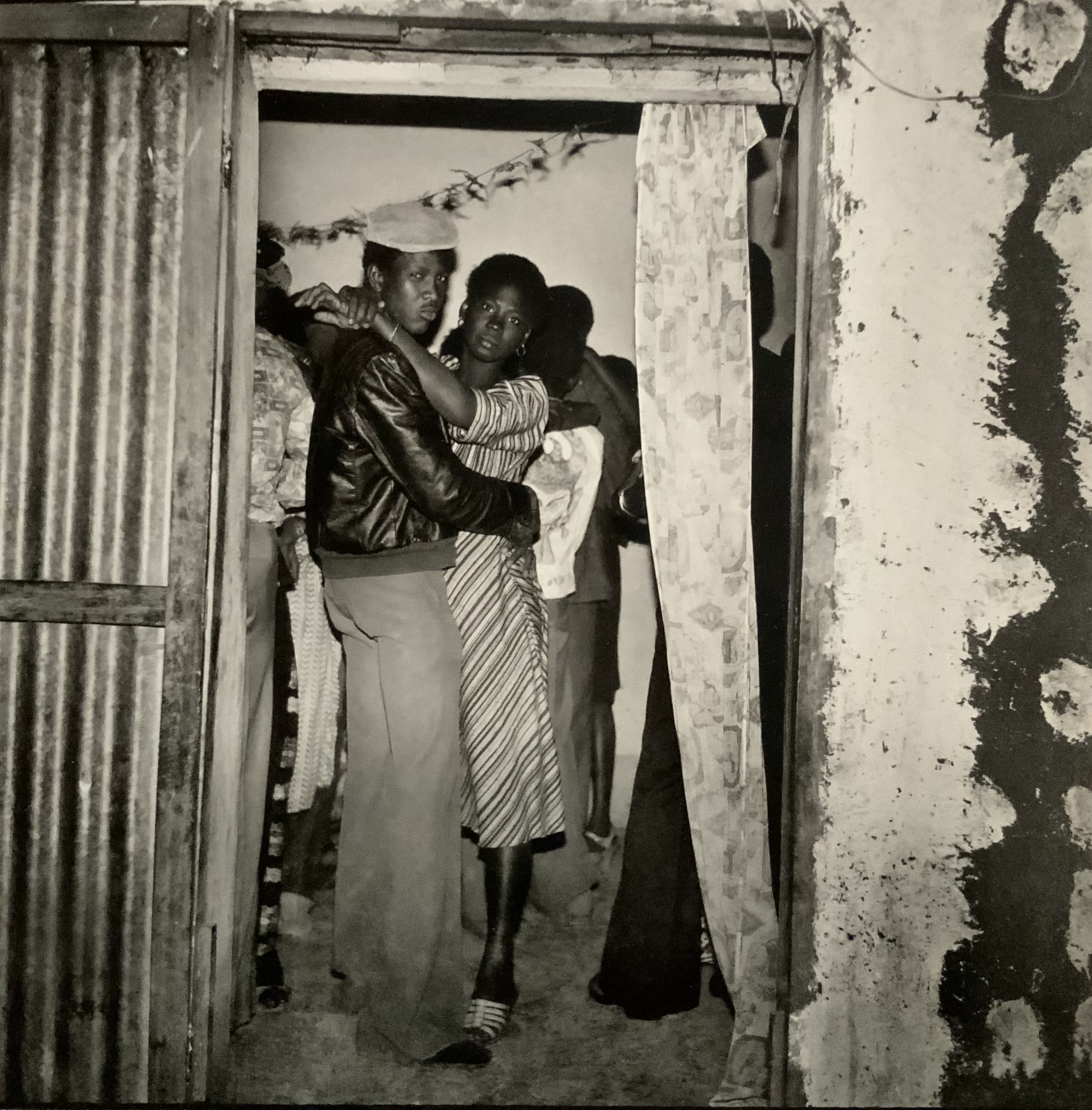 SORY SANLÉ photographe burkinabé crée, dans les années soixante, le Studio Volta Photo,  véritable espace de magie et de fantaisie sur plusieurs décennies (1960-1985). Ses photographies -archives vivantes ou instantanés de vie prises sur fonds de scènes peints, utilisent des accessoires de modernité de l’époque: téléphone, guitares, transistors, motos ou disques. Les vinyles symbolisent une véritable révolution culturelle post indépendance. Les portraits de Sory Sanlé célèbrent les nuits yéyés de Bobo Dioulasso. Ils sont la bande-son originale et pourtant silencieuse de ces années d’exubérance rythmées par la musique yéyé, le jazz, le rock ou les groupes voltaïques émergents – chacun y entend ce qu’il veut.