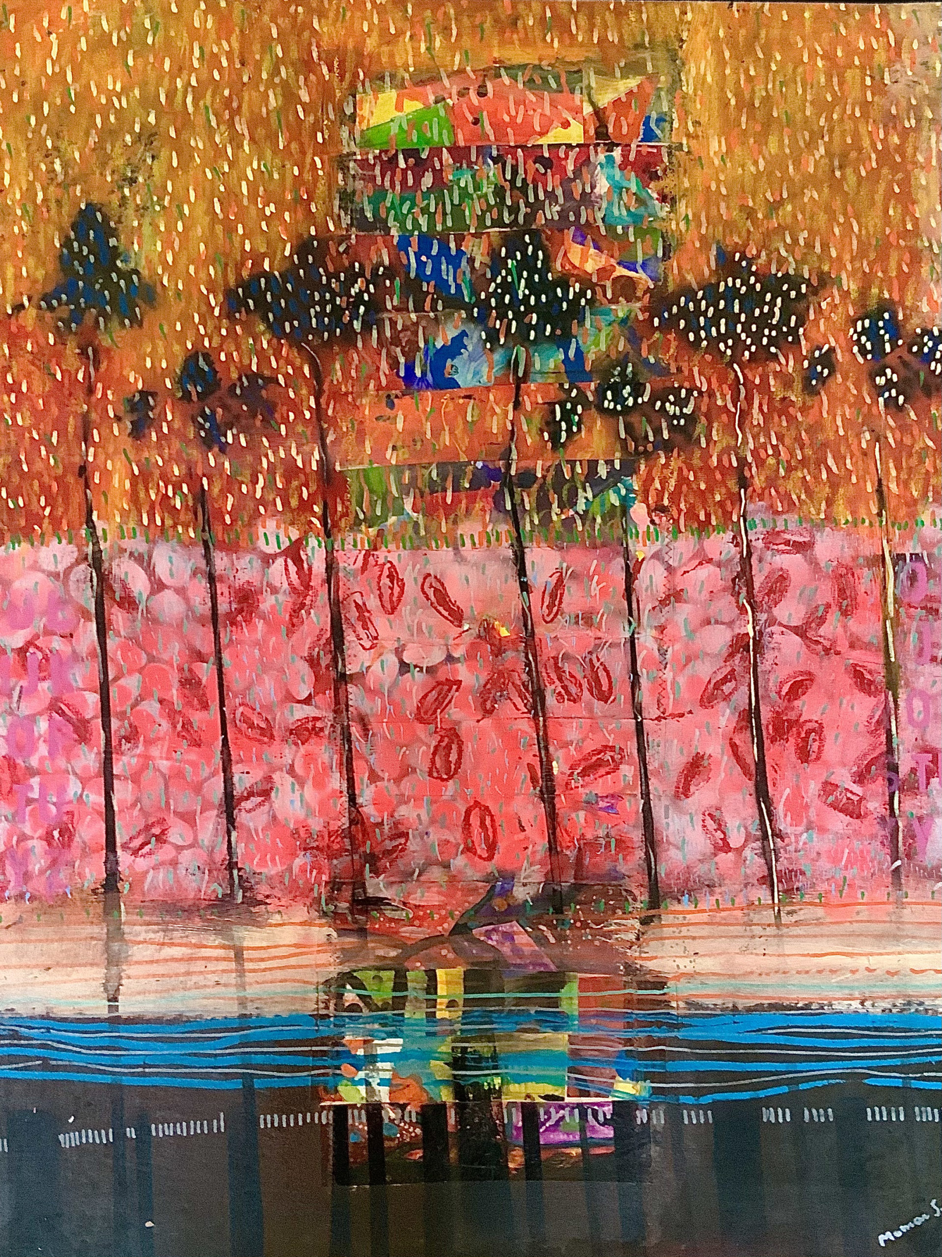 Acrylique et collages de tissus sur toile